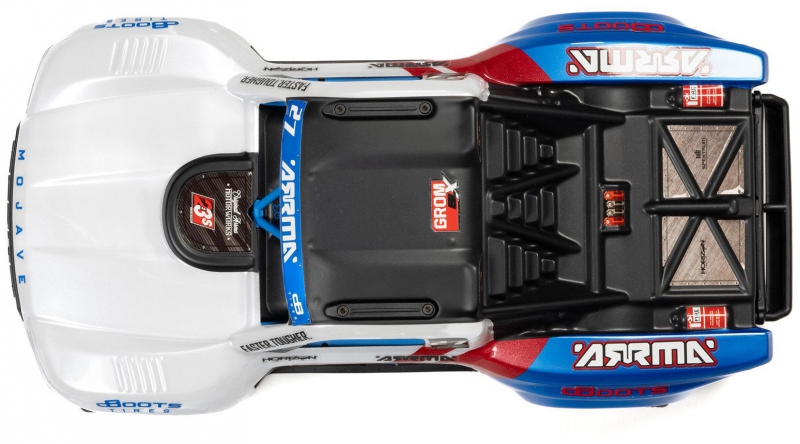 Start bashing with a vehicle you'll never stop driving! Already 2S and 3S capable, the small-scale ARRMA MOJAVE GROM 223S BLX offers Baja realism, desert truck toughness, and 50+ mph top speed potential - all in one low-priced, ready-to-run package.