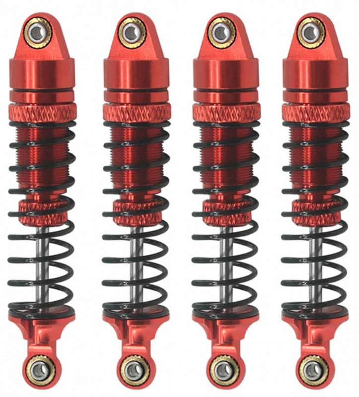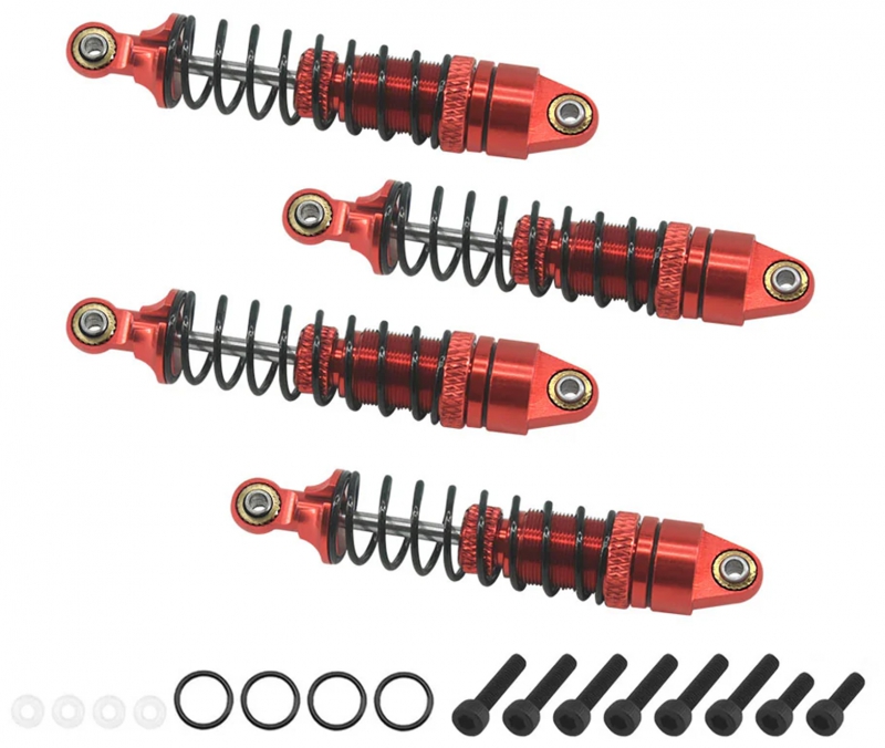 4 x Pre-built, Oil ready, Alumimum shocks. Hardware for fittment. Spare 'o' ring seals (4 x small, 4 x large)