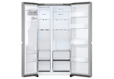 The LG GSLC40PYPE 641L American Style Fridge Freezer – Prime Silver offers generous capacity, advanced cooling technology and a premium finish designed for modern kitchens. With a total volume of 641 litres, this LG side-by-side refrigerator provides ample space for fresh and frozen food, making it ideal for large households. Featuring Linear Cooling™, Total No Frost and a plumbed ice and water dispenser, the GSLC40PYPE combines performance, convenience and style in one energy-efficient appliance.