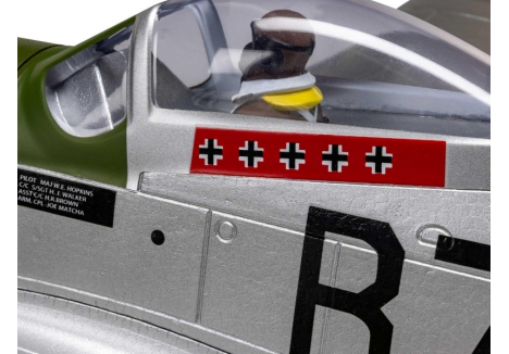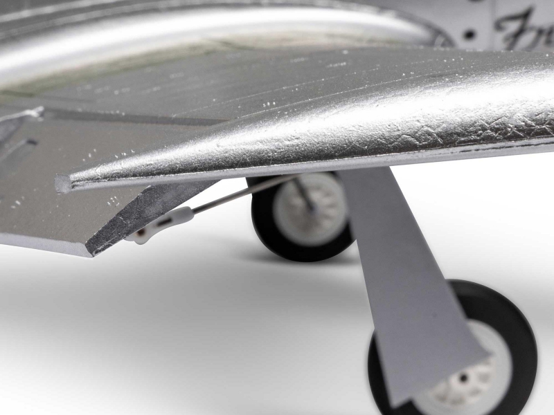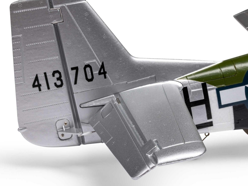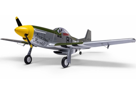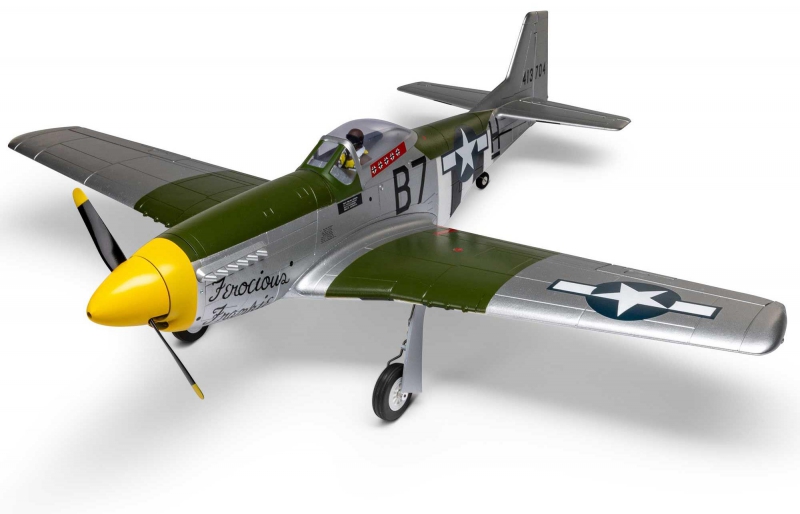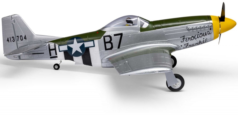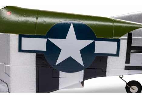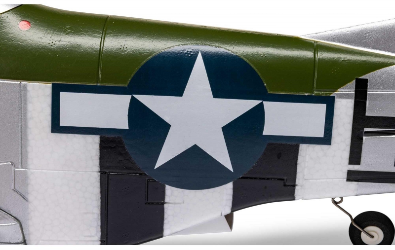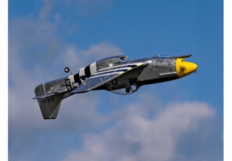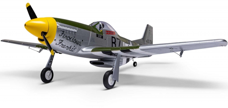 If you’re a low-time pilot looking for a "next step after a trainer" model and are interested in learning to fly warbirds, or you’re an experienced pilot looking for a no-hassles and fun-to-fly sport scale model, the E-flite P-51D Mustang 1.0m is a perfect choice. Much like the ever-popular and best-selling E-flite T-28 Trojan 1.1m, it’s designed to be a simpler and lower-cost alternative to full-house P-51 models equipped with flaps and retractable landing gear that are typically more complex to operate and difficult to fly. The fixed landing gear with a steerable tailwheel makes it easy to taxi, take off from, and land on smooth surfaces. Or, leave the landing gear off for more speed and vertical performance with easy hand launches over and landings on grass. It’s conveniently sized to be easy to store and transport without disassembly - and so it can be flown at large parks and sports fields as well as RC flying fields. Factory-installed digital and metal-geared servos provide precise and reliable control at every speed. The power system includes a Spektrum outrunner motor and a 30-amp telemetry-capable ESC that are compatible with popular 3S and 4S 1300-2200mAh batteries. And the BNF Basic version is equipped with a factory-installed Spektrum AR631+ receiver featuring exclusive and enhanced AS3X+ along with optional-use SAFE Select and automatic Hand Launch Assist technologies. Plus both versions are factory-finished in the unique "Ferocious Frankie" trim scheme that was used on a Mustang flown by Major Wallace E. Hopkins - an ace credited with 8 victories during World War II.