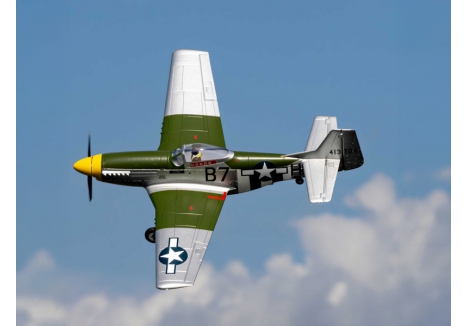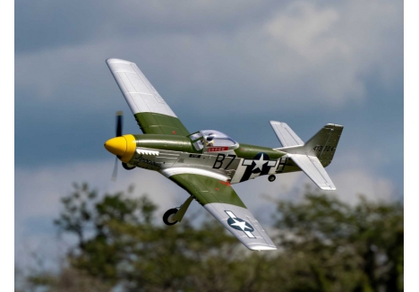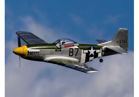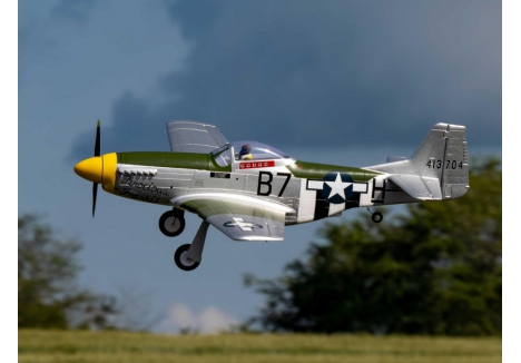 The E-flite P-51D Mustang 1.0m is a "sport scale" replica of the most popular and iconic fighter aircraft ever! Inspired by the original ParkZone "Ferocious Frankie" and "Gunfighter" models and as a taildragger alternative to the extremely popular E-flite T-28 1.1m, it’s designed from the ground up to be a smaller and more affordable alternative to larger "full-house" P-51 models because not everyone is ready for the complexity of flaps and not all fields are suitable for retractable landing gear. But it’s also larger so it’s easier to see and can handle flying in more wind than smaller micro and ultra-micro class models – yet can still be flown at large parks and sports fields while being easy to transport without disassembly. This makes it a perfect first-ever low-wing, scale, and warbird model for low-time pilots who have mastered a trainer and no-hassles everyday sport scale model for experienced pilots. The BNF Basic version is equipped with enhanced AS3X+ technology that smooths out the effects of wind and turbulence better than ever before, and is also equipped with optional-use SAFE Select technology that makes it even easier to fly! And both versions include Spektrum digital, metal-geared servos, a 30A telemetry-capable ESC, plus a 3S and 4S compatible motor.