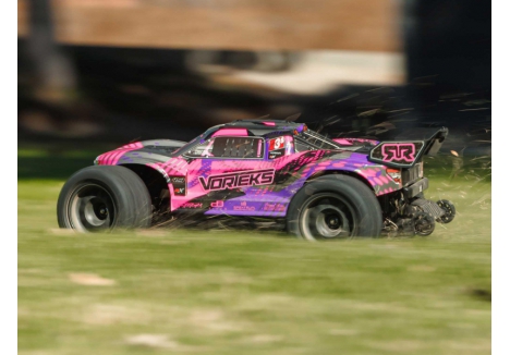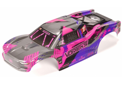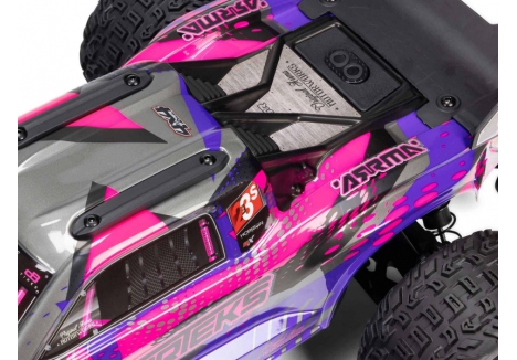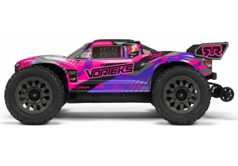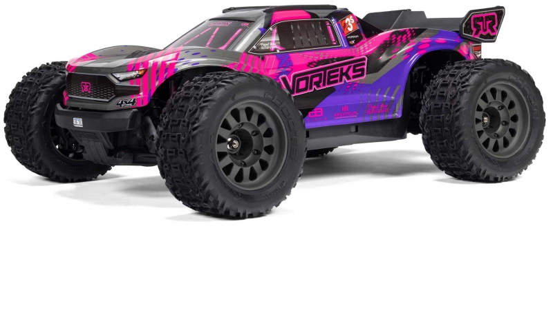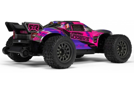 The ARRMA C-ARA4305V4T3 VORTEKS 223S BLX 4X4 RTR with 3100Kv brushless motor and 80A ESC is a purple 1/10 scale stadium truck engineered for drivers who want to transition from brushless beginner to high-speed bashing expert—without the need for upgrades or replacements. Designed for off-road agility and on-road precision, the ARRMA C-ARA4305V4T3 VORTEKS 223S BLX combines a wide stance, aerodynamic body, and race-tuned electronics to deliver scalable performance across 2S and 3S LiPo setups. With waterproof components, a center differential, and a hidden clipless body system, this stadium truck is built to handle terrain transitions, directional changes, and high-speed launches with confidence and control.