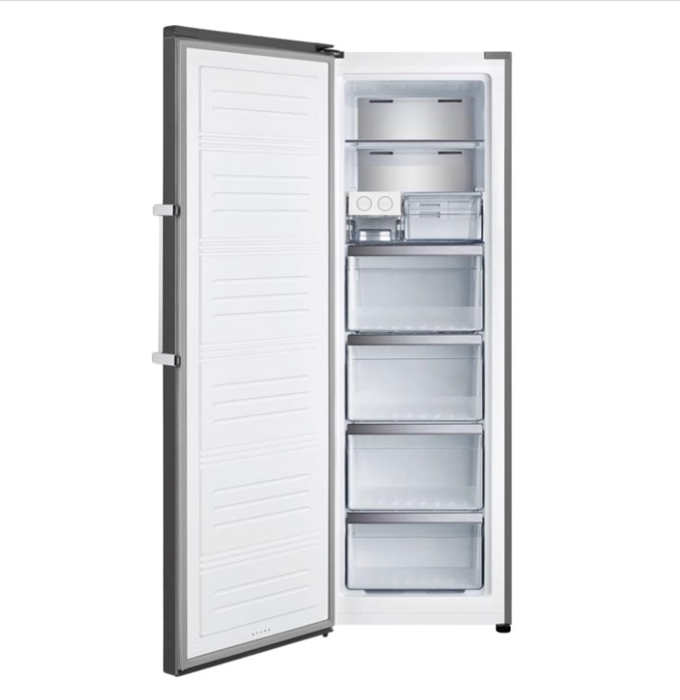 The Teknix tall freezer with 5 drawers and 2 glass shelves offers a thoughtfully arranged interior that supports efficient food organisation. The five drawers provide enclosed compartments for meats, vegetables, and pre-packed meals, while the two glass shelves offer open storage for larger items or frequently accessed goods. The glass shelves are easy to clean and add a premium feel to the interior, helping users maintain hygiene and visibility across all sections.