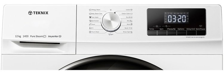 - Product Type: Teknix TKW12142HW 12kg washing machine with 1400 spin and steam function, Teknix TKW12142HW freestanding washer with LED display and inverter motor, Teknix TKW12142HW A-rated washing machine with quick wash and child lock, Teknix TKW12142HW with 16 programs and 72dB spin noise level, Teknix 12kg washer with eco wash and 2-year warranty, Teknix white washing machine with 3-pin UK plug and adjustable settings
