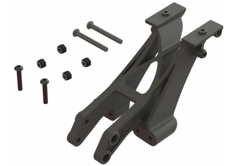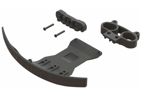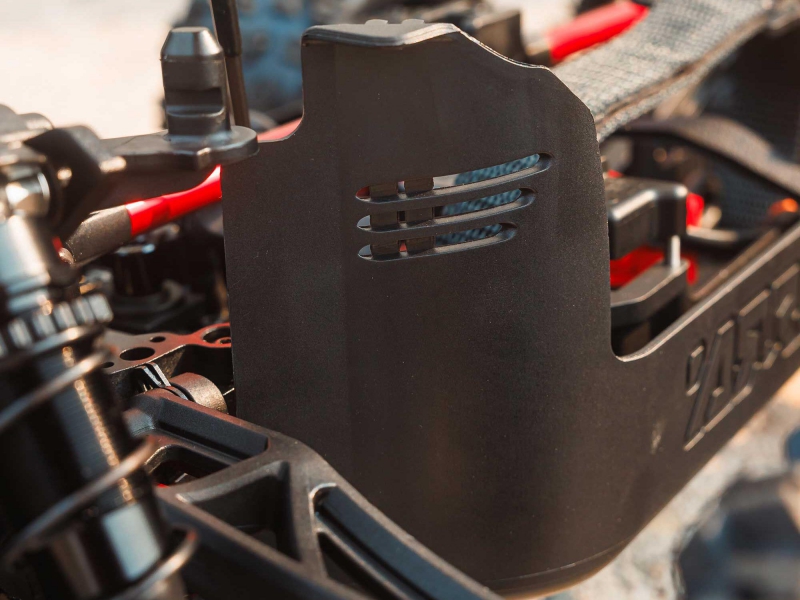 The ARRMA C-ARA8608V6T1 4WD EXB speed truck is built on a black-anodized 7075 T6 aluminium chassis plate that’s engineered to absorb the punishment of high-speed jumps and rough terrain. Reinforced with a two-piece tower-to-tower brace, stainless steel skid plate, and EXB wing mount, the chassis delivers structural integrity and long-term durability. Taller composite side guards protect internal components from dirt and debris, while the inner body tower adds rigidity and simplifies maintenance. These EXB upgrades ensure the ARRMA C-ARA8608V6T1 brushless monster truck remains stable and responsive under extreme conditions, making it the ideal choice for drivers who demand no-compromise toughness.