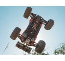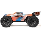 The ARRMA C-ARA8608V6T1 brushless monster truck is a 1/8 scale RC basher engineered for extreme speed, rugged durability, and bold styling. Finished in a striking orange multi-color livery, the ARRMA C-ARA8608V6T1 1/8 scale RC basher builds on the legendary KRATON 6S BLX 4X4 platform and elevates it with EXB (Extreme Bash) upgrades throughout. Whether you're launching off ramps, tearing through gravel, or pushing the limits on asphalt, the ARRMA C-ARA8608V6T1 4WD EXB speed truck delivers 65+ mph capability and stunt-ready control. With Smart-enabled electronics, a clipless body system, and adjustable suspension, this speed monster truck is designed to dominate every terrain with confidence and style.