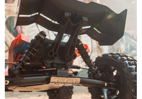 The suspension architecture of the ARRMA C-ARA8608V6T1 4WD EXB speed truck is designed for tunability and control across varied terrain. Independent suspension geometry combined with 16mm oil-filled shocks mounted on aluminium towers allows for fine-tuned ride height and damping control. Whether you're navigating uneven surfaces or launching off dirt mounds, the adjustable suspension ensures consistent handling and stability. The EXB shock towers provide added strength, while the composite side guards shield the suspension components from debris. This configuration enables the ARRMA speed truck with EXB chassis and Copperhead tyres to maintain composure during aggressive maneuvers and recover quickly from hard landings.