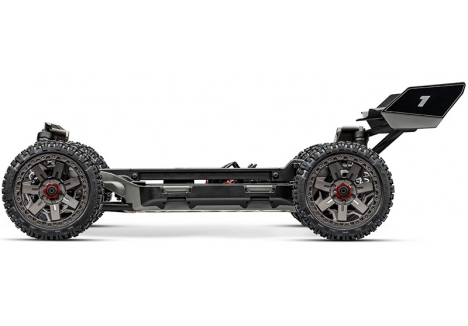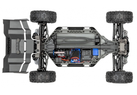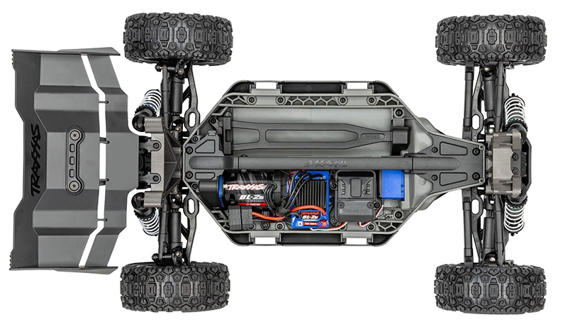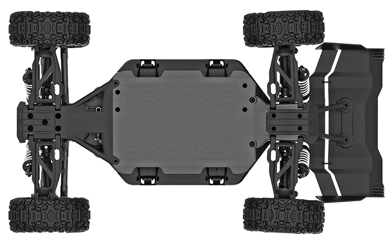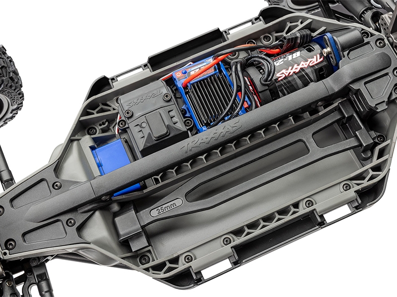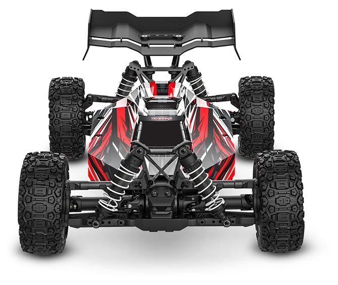 The composite tub chassis of the Traxxas TRX90154-4-RED 1/8 scale RC car is designed to concentrate mass below the driveshafts, enhancing stability and responsiveness. A T-Bar stiffener reinforces the structure, reducing flex under load and improving cornering precision. The modular layout allows easy access to electronics and drivetrain components, while the secure battery hold-down latch keeps power packs firmly in place during aggressive maneuvers. High-clearance skid plates protect the underside from debris and impacts, making the chassis suitable for off-road racing and trail exploration. This low-CG design contributes to the buggy’s race-inspired handling, allowing quick turn-in and flat cornering even at high speeds.
