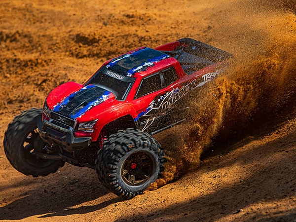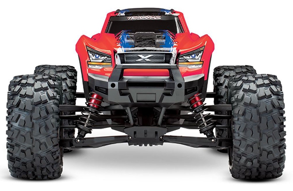 At the end of the day, size always wins. X-Maxx plows over obstacles and muscles through extreme terrain that leaves lesser trucks stranded. Mammoth 8-inch tall tires, long-arm suspension, and huge ground clearance dwarf the surroundings for virtually unstoppable monster truck fun
