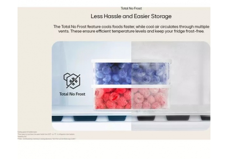Equipped with Total No Frost technology, the GSBC40PYPE eliminates the need for manual defrosting while maintaining a consistent internal temperature that prolongs food freshness. The Multi Air Flow system ensures even cooling across all shelves, and the Smart Inverter Compressor offers quiet, reliable, and energy-efficient operation, earning it an E energy rating under the UK energy label.