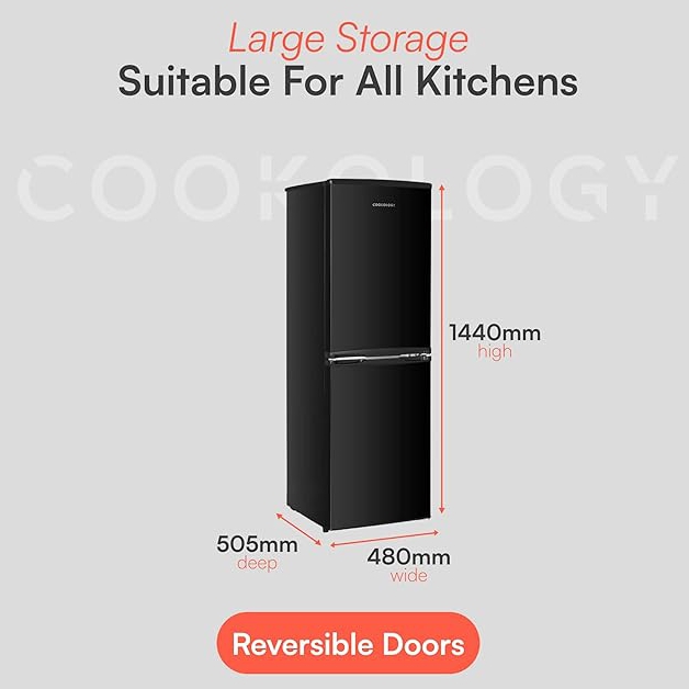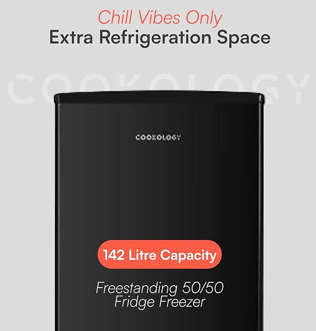 The Cookology CFF1425050IX is a stylish and practical freestanding fridge freezer. With a generous 142L total capacity split evenly between the fridge and freezer compartments, it offers ample storage space for your fresh and frozen groceries.