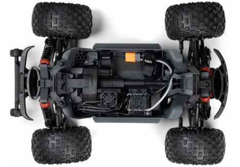 The ARRMA monster truck with composite chassis and throttle limiting transmitter is built to take hits and keep going. The ventilated composite chassis resists dirt intrusion and helps cool internal components. Extended side guards and a driveshaft stone guard protect critical systems during aggressive driving. The SLT3 transmitter’s throttle limiting feature allows you to control top speed until you're ready to unleash full power, making it ideal for beginners and experienced drivers alike. These features combine to deliver a monster truck that’s not only tough but also refined in its handling and responsiveness.