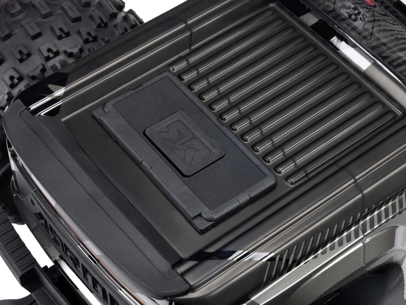 - Body Mount: Hidden clipless retention system – featured in the ARRMA C-ARA4302V4T1 monster truck with clipless body, SLT3 transmitter, and Dynamic Stability Control, secures body while allowing fast access