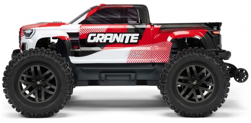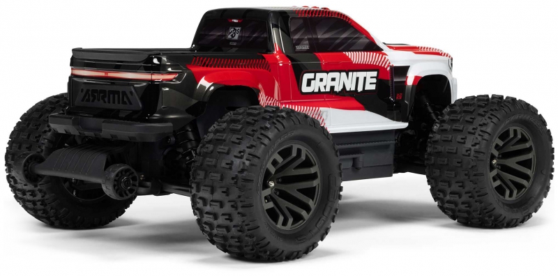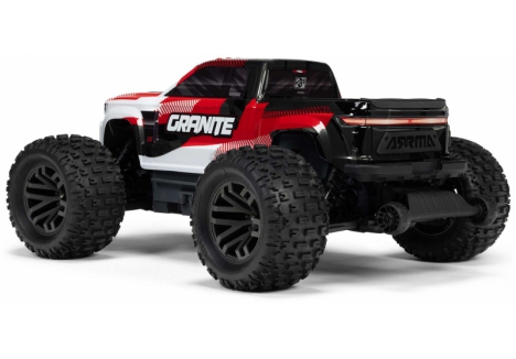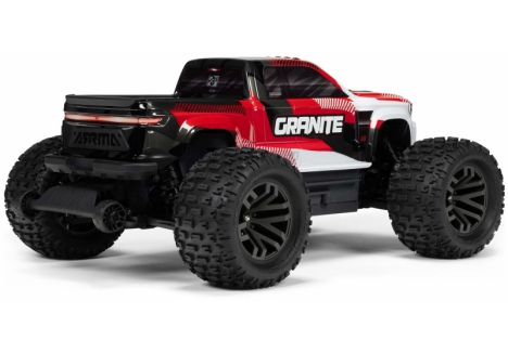 The ARRMA C-ARA4302V4T2 GRANITE 223S BLX 4X4 RTR with 3100Kv brushless motor and 80A ESC is a red 1/10 scale monster truck engineered for backyard bashing, off-road control, and upgrade-ready performance. Designed to deliver 50+ mph potential with 3S LiPo power, this aggressively styled truck combines rugged construction, intelligent electronics, and beginner-friendly features in one ready-to-run package. Whether you're launching off ramps or tearing through gravel, the ARRMA C-ARA4302V4T2 offers a balanced mix of speed, stability, and durability. With waterproof electronics, Dynamic Stability Control, and a clipless body retention system, this truck is built to grow with your skills and thrive in all conditions.
