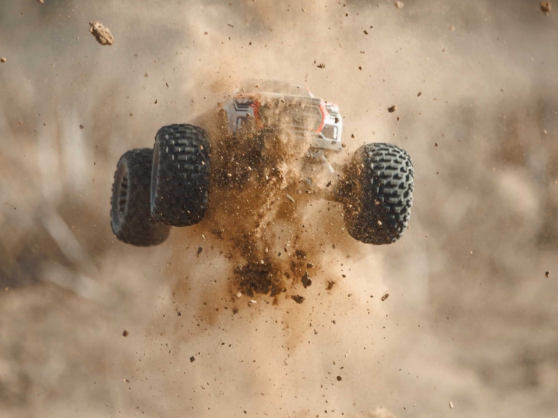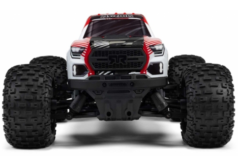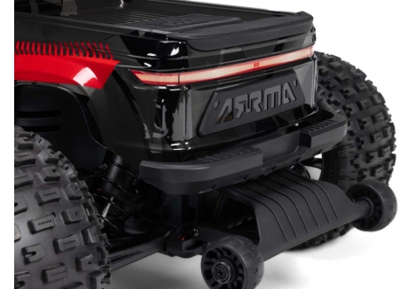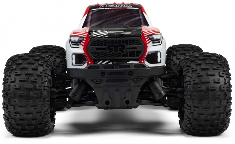 The ARRMA monster truck with composite chassis and throttle limiting transmitter is built to take hits and keep going. The ventilated composite chassis resists dirt intrusion and helps cool internal components. Extended side guards and a driveshaft stone guard protect critical systems during aggressive driving. The SLT3 transmitter’s throttle limiting feature allows you to control top speed until you're ready to unleash full power, making it ideal for beginners and experienced drivers alike. These features combine to deliver a monster truck that’s not only tough but also refined in its handling and responsiveness.