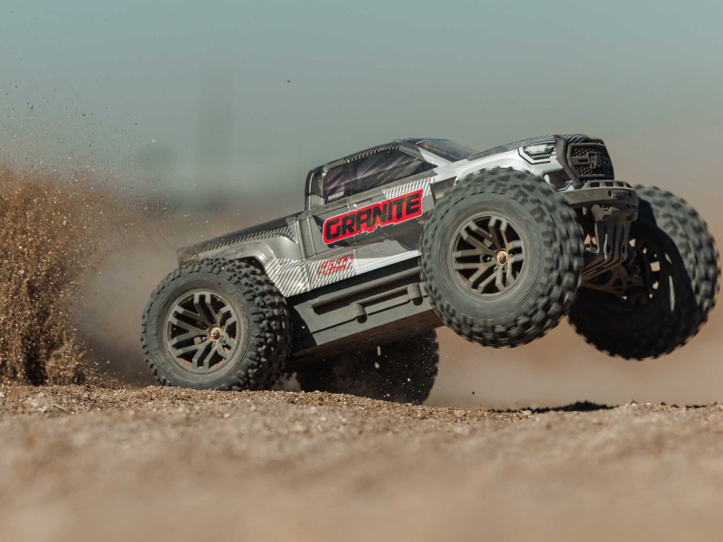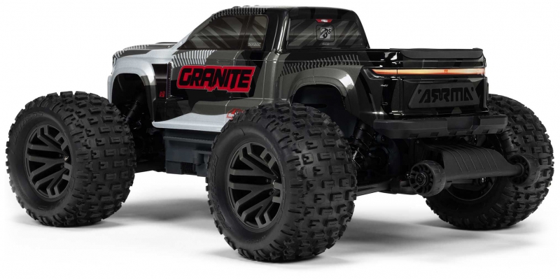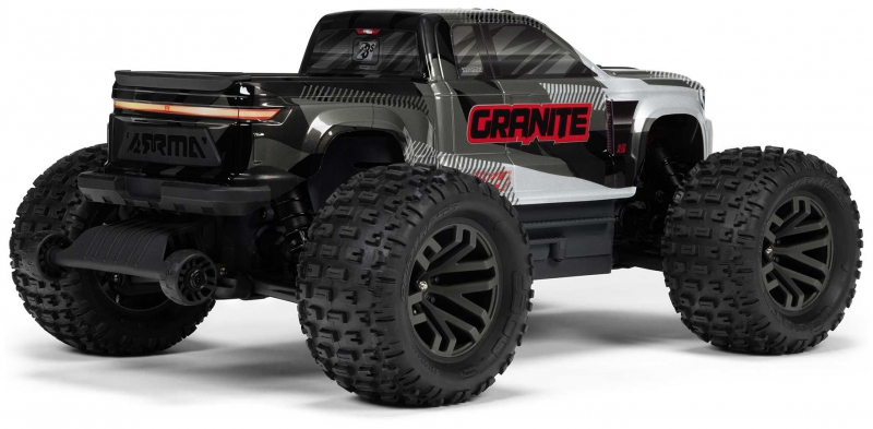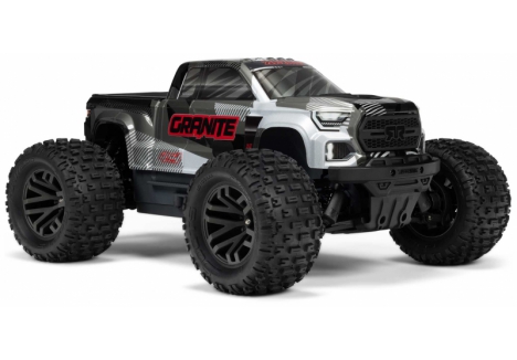 The ARRMA C-ARA4302V4T3 GRANITE 223S BLX 4X4 RTR with 3100Kv brushless motor and 80A ESC is a gunmetal 1/10 scale monster truck engineered for backyard bashing, terrain domination, and upgrade-ready performance. Built to deliver 50+ mph potential with 3S LiPo power, this aggressively styled truck combines rugged construction, intelligent electronics, and beginner-friendly features in one ready-to-run package. Whether you're launching off ramps or tearing through gravel, the ARRMA C-ARA4302V4T3 offers a balanced mix of speed, stability, and durability. With waterproof electronics, Dynamic Stability Control, and a clipless body retention system, this truck is designed to grow with your skills and thrive in all conditions.