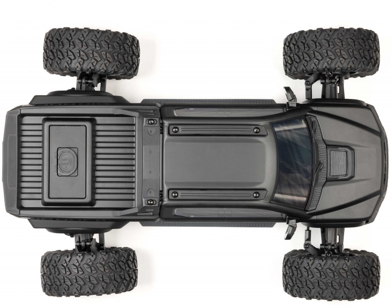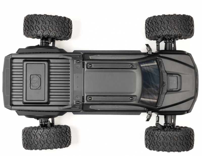 The ARRMA monster truck with folding mirrors and waterproof Spektrum electronics incorporates a hidden clipless retention system that secures the body without external clips. This design streamlines maintenance and battery access while preserving the truck’s scale realism. The clipless system also reduces the risk of body detachment during high-speed impacts, ensuring consistent performance throughout each run. Paired with the crew cab body and stealth monochrome electronics, the ARRMA C-ARA4312V4T1 BIG ROCK 223S BLX delivers a clean, aggressive aesthetic that complements its functional advantages.