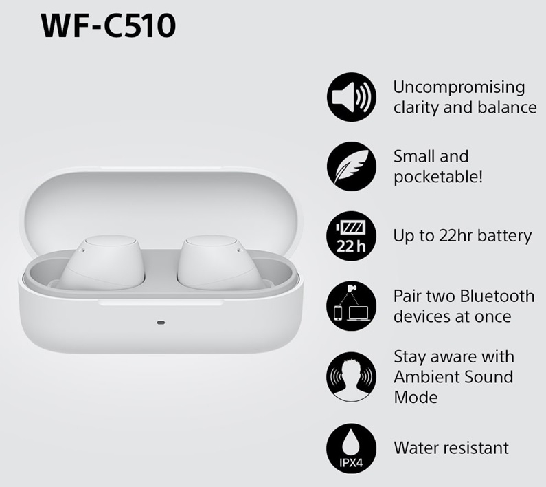 Key features of the Sony WFC510W.CE7 wireless headphones