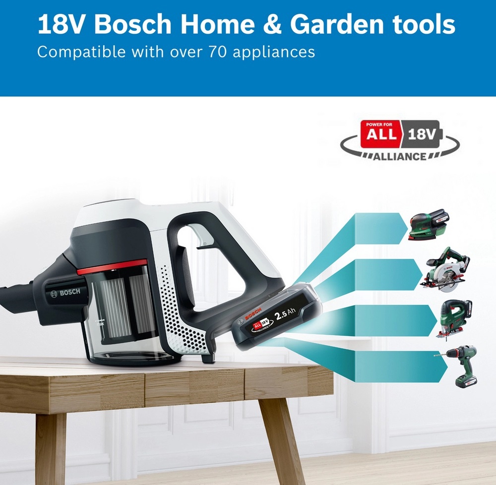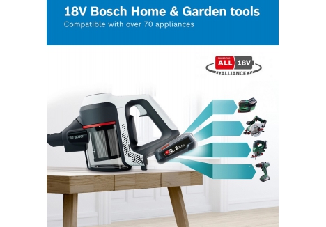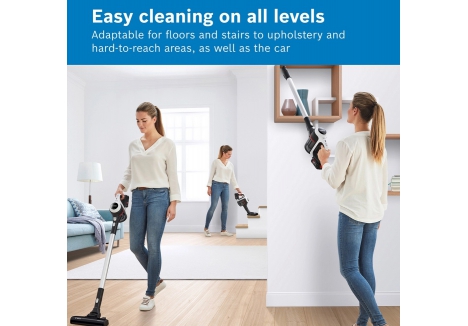 The Bosch BCS612GBKIT cordless vacuum cleaner white combines performance, convenience, and design in one compact unit. Its white finish adds a refined touch to your cleaning routine, while the ergonomic build ensures comfort during use. The vacuum’s compatibility with Bosch’s Power for ALL battery system extends its utility beyond cleaning, allowing the battery to be used across over 70 Bosch tools and garden devices. This cross-device compatibility adds long-term value and flexibility to your purchase. The Bosch BCS612GBKIT is easy to maintain, with a lifetime filter, removable brush rolls, and dust-free emptying. Whether you're cleaning daily messes or tackling deep cleaning tasks, this vacuum delivers consistent results with minimal effort.