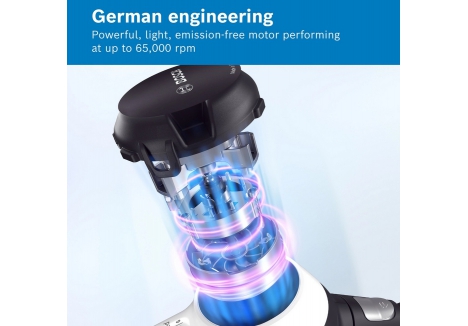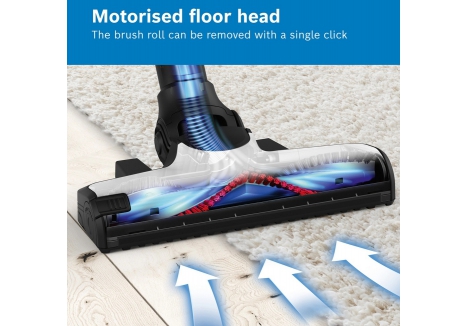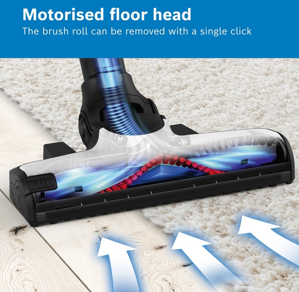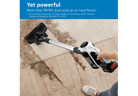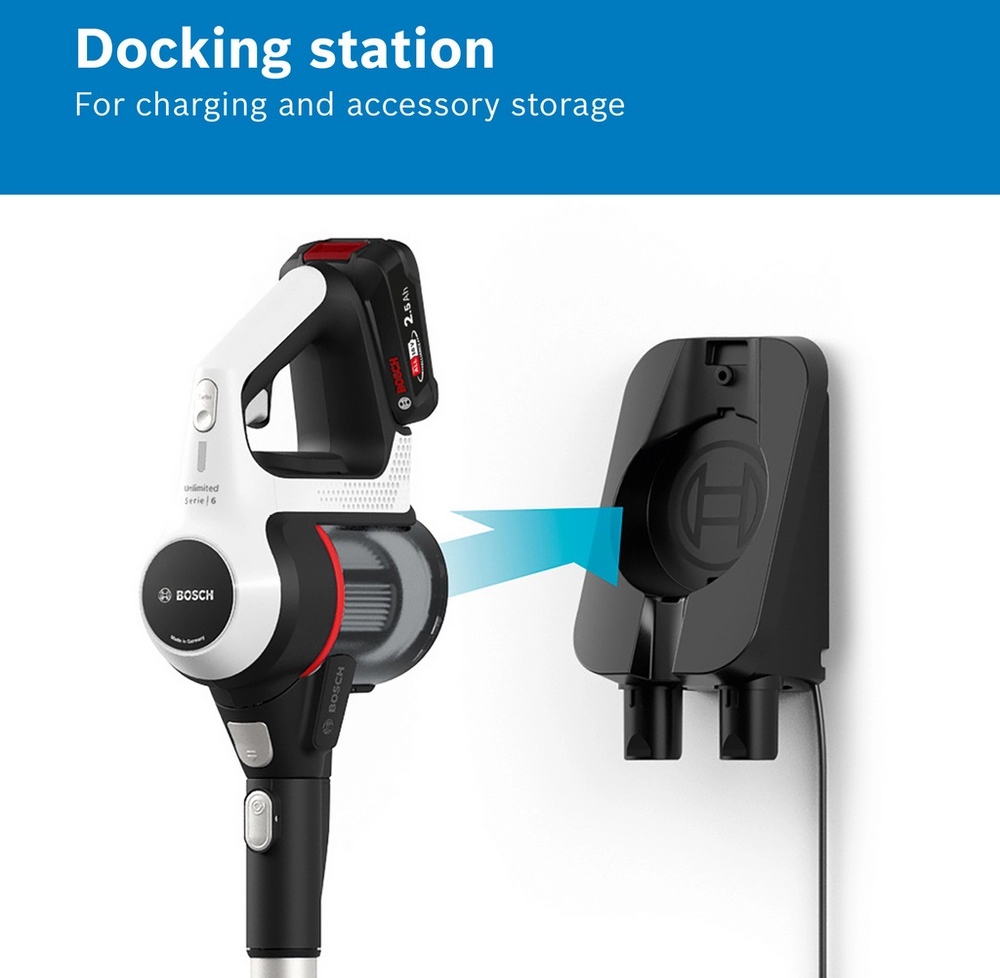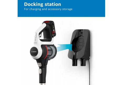 Equipped with the AllFloor Power Brush, the Bosch BCS612GBKIT with AllFloor Power Brush and docking station is designed to clean a wide variety of surfaces with consistent suction. Whether you're tackling carpet, tile, parquet, stone, or laminate, the motorized brush head adapts to each floor type, delivering over 95% dust pickup on hard surfaces. The docking station provides a convenient storage and charging solution, ensuring the vacuum is always ready for use. This combination of versatility and accessibility makes the Bosch BCS612GBKIT a reliable choice for homes with mixed flooring and varied cleaning needs.