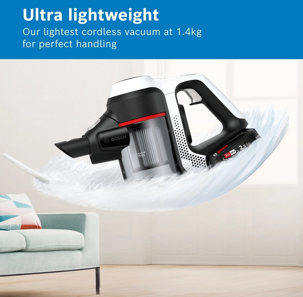 Key features of the Bosch BCS612GBKIT cordless vacuum cleaner white