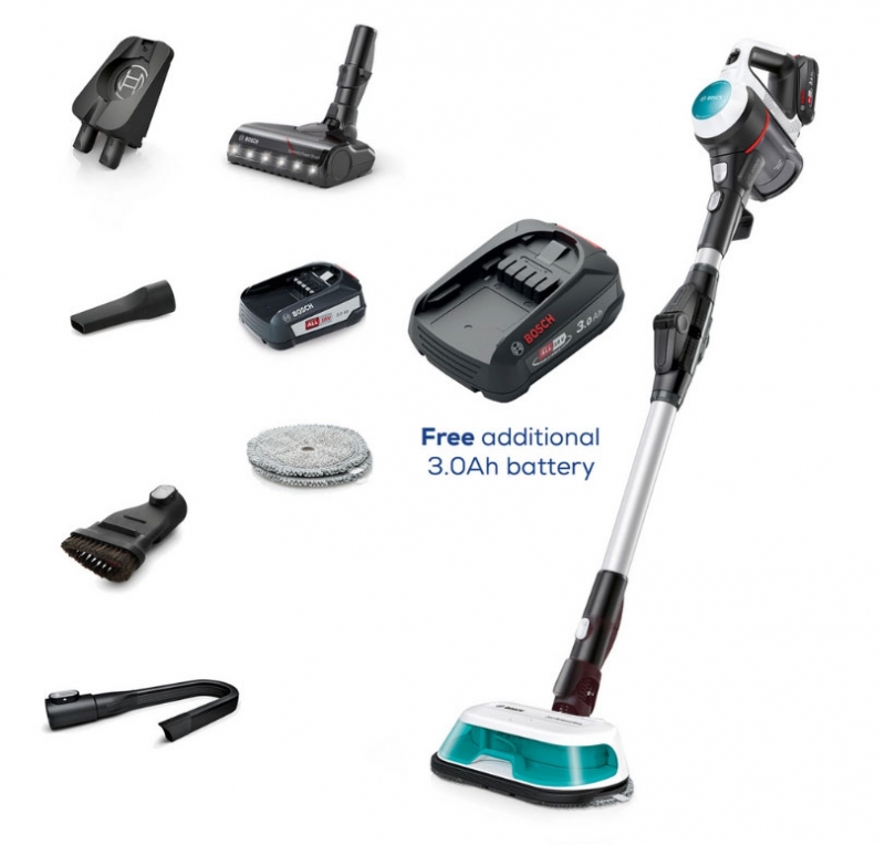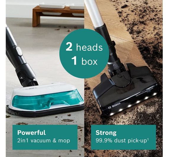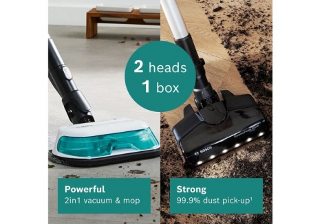 Featuring Bosch's signature 2-in-1 Aqua head, this model eliminates the need to vacuum and mop separately. The powerful pads spin at 200rpm to lift grime while strong suction extracts debris, providing efficient wet and dry cleaning in one pass. Whether you're tackling muddy footprints or kitchen spills, this floor cleaner handles it all with ease.