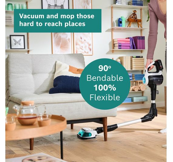 Designed with versatility in mind, this Bosch vacuum includes a flexible tube and compact 180° head to reach under furniture and into tight corners. Multiple attachments make it suitable for everything from upholstery to skirting boards, while anti-hair wrap technology ensures hassle-free maintenance.