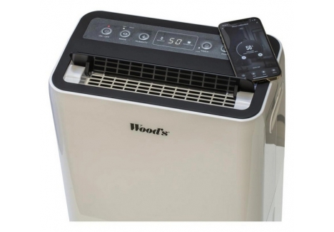 For a cleaner, drier home with smart control in White, buy Woods MRD20GWKIT Dehumidifier with Free Hygrometer White today and benefit from 20 L daily removal, Wi?Fi remote adjustments, a top exhaust for laundry drying, castor wheel portability, automatic shut?off safety, two fan speeds, and continuous drainage convenience.