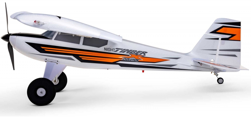 The E-flite Night Timber X Evolution 1.2m has evolved to become even more convenient, capable, and durable than the extremely popular original. Upgrades include a top-mounted hatch, stronger gear mounts and heavy-duty springs, plus many more that make it better than ever before!Key Features