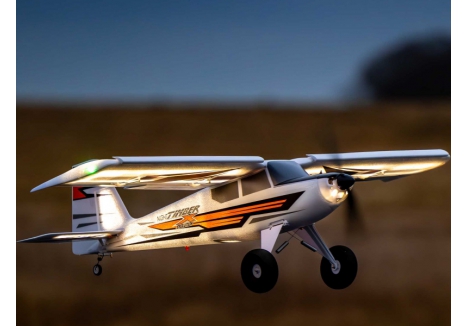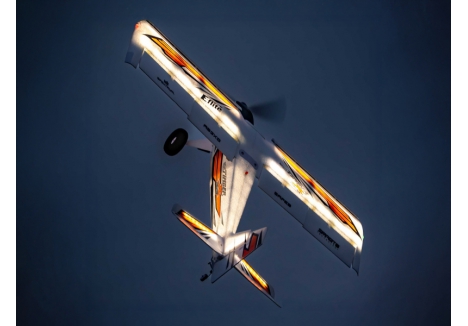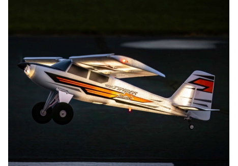 The E-flite Timber X 1.2m unleashed a new era of STOL plus 3D and aerobatic capability. Based on the extremely popular Timber 1.5m models but featuring a different wing design and oversized control surfaces, it offered an even wider flight envelope to deliver a truly "mild to wild" flying experience. In addition to the standard LED landing, navigation, and strobe lights, the Night Timber X Evolution 1.2m adds integrated high-visibility LED lights throughout the airframe that make it possible to fly pretty much any time – day OR night! It also features many updates and upgrades compared to the original Night Timber X including a top hatch for faster, easier battery changes, plus combined electrical connectors for simpler wing installation and removal. Strengthened landing gear mounts, along with heavier-duty springs similar to the Twin Timber 1.6m, improve the durability and STOL capability when flying from rough terrain.