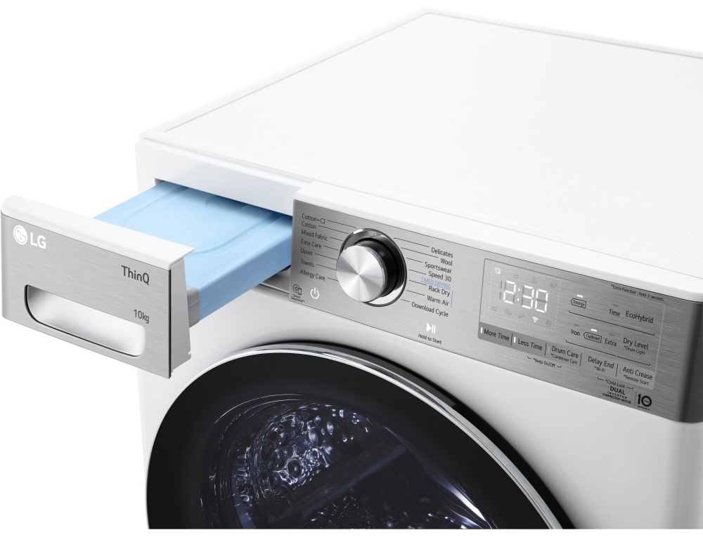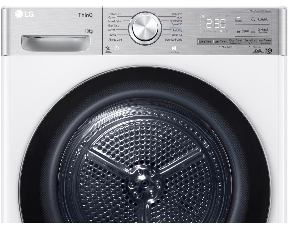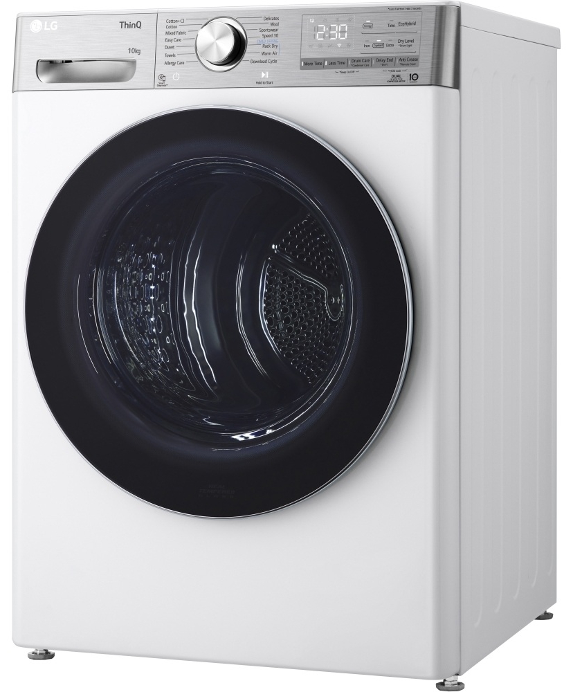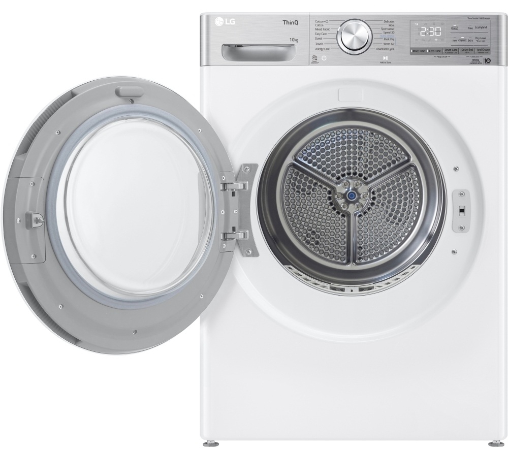 This wifi connected 10kg tumble dryer is powered by LG ThinQ™ technology, offering remote monitoring, downloadable programmes, and smart pairing with compatible LG washing machines. With Smart Pairing, the dryer automatically selects an appropriate cycle based on your washer’s settings. You can manage it all via your smartphone, enabling full control even when you're not at home.