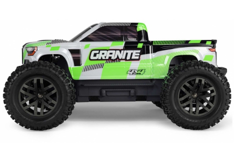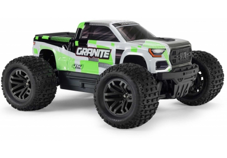 The ARRMA C-ARA4202V4T1 GRANITE MEGA 665 4X4 RTR with 14T brushed motor and 40A ESC is a green monster truck built for drivers who demand rugged performance, aggressive styling, and upgrade-ready engineering. Designed for 1/10 scale backyard bashing, this ready-to-run 4WD truck combines brute strength with intelligent design. From its clipless body retention system to its 3S brushless-ready transmission, every component is crafted to deliver durability and control across dirt, gravel, and short grass terrain. Whether you're a beginner looking for a reliable entry point or an experienced basher seeking a platform that grows with your skills, the ARRMA C-ARA4202V4T1 offers a compelling balance of power, protection, and precision.
