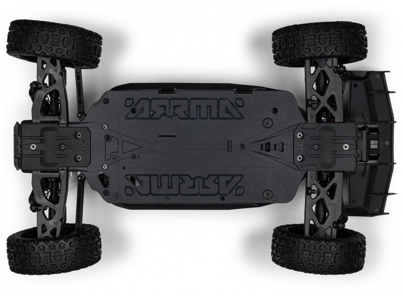 - Chassis Type: Composite – ventilated for cooling and designed to shed debris, as seen in the ARRMA C-ARA4206V4T1 with 3S brushless-ready transmission and ventilated chassis