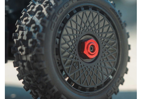 The TYPHON MEGA 665 with dBoots 2-HO tires and waterproof Spektrum electronics is equipped to grip and go. The multi-surface tread pattern on the dBoots 2-HO tires delivers traction across dirt, gravel, and short grass. Vent holes allow air and moisture to escape, improving grip and preventing buildup. The tires are mounted on tough nylon wheels with foam inserts that reduce vibration and enhance handling. Combined with the waterproof Spektrum electronics, these components ensure the ARRMA C-ARA4206V4T1 is ready to bash in any condition with confidence and control.