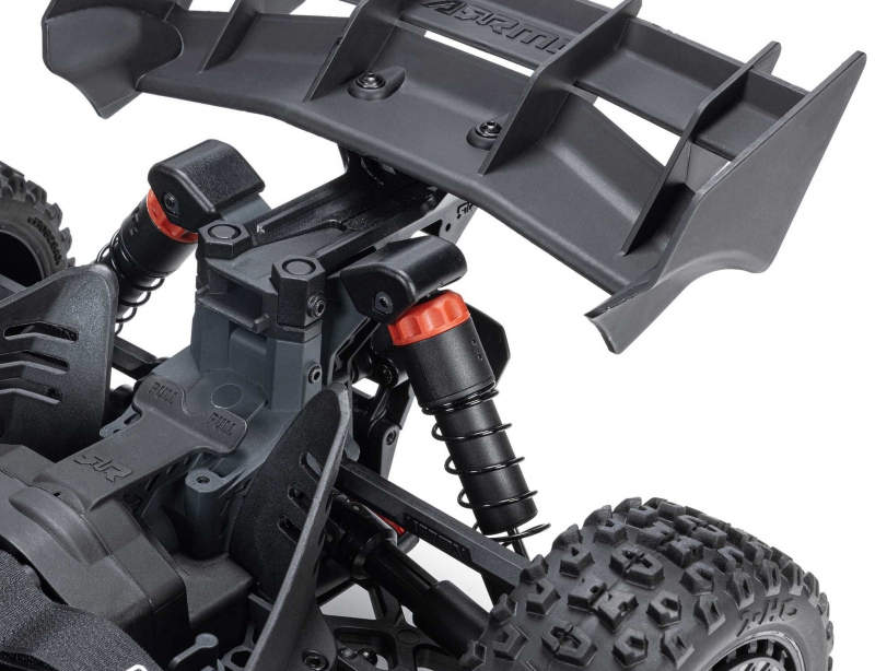 - Shock Type: Oil-filled coilover – featured in the ARRMA racing buggy with foam-insert wheels and oil-filled coilover shocks, these shocks smooth out impacts and support aggressive driving