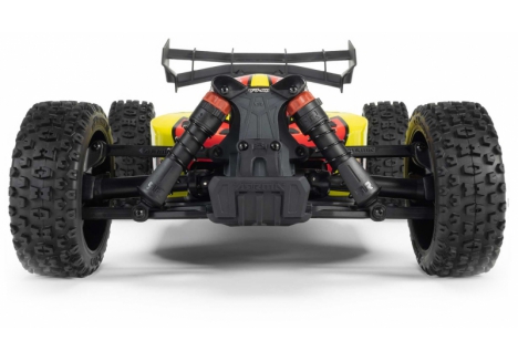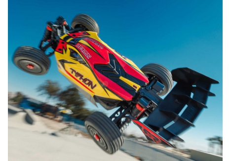 The ARRMA C-ARA4206V4T2 TYPHON MEGA 665 4X4 RTR with 14T brushed motor and 40A ESC is a yellow 1/8 scale racing buggy engineered for drivers who demand rugged performance, upgrade-ready design, and aggressive styling in one ready-to-run package. Built for off-road control and high-speed bashing, this buggy combines a powerful brushed motor, durable 4WD drivetrain, and aerodynamic body with a low center of gravity. Whether you're launching off dirt ramps or carving through gravel tracks, the ARRMA C-ARA4206V4T2 delivers a balanced mix of torque, traction, and terrain adaptability. With waterproof electronics, a ventilated chassis, and a clipless body retention system, this buggy is designed to evolve with your driving skills and deliver consistent performance in all conditions.
