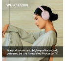 Sound quality is a priority in the Sony WH-CH720N Bluetooth headset with DSEE and 30mm drivers pink. The Digital Sound Enhancement Engine (DSEE) restores high-frequency elements lost during audio compression, delivering sound that’s closer to the original recording. Combined with 30mm dynamic drivers and the Integrated Processor V1, the headphones produce natural vocals, clear highs, and balanced lows. Whether you're streaming music or watching videos, the audio remains rich and detailed. The tuning is designed to minimise distortion and maintain clarity across all genres.