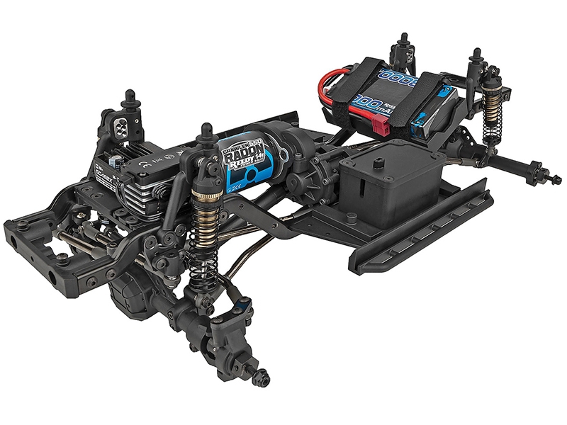 The heart of the kit is the Element RC Stealth XF transmission with forward-mounted motor design that shifts weight over the front axle for improved traction. Builders receive both 5.7 % and 11.83 % overdrive gears in-box, plus the option to purchase a one-to-one ratio separately. Independent front/rear drive-ratio tuning delivers the perfect balance of crawl speed and torque for your personal style.
