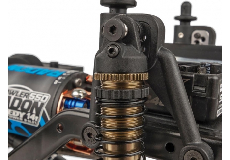 The Element RC adjustable shock suspension features Factory Team threaded, aluminum-bodied bronze shocks that let you dial in three droop settings without altering spring preload. This means you can instantly tweak ride height for low-grip ledges or high-speed rock gardens, keeping tyres planted through every obstacle and ensuring predictable handling across varied terrain.