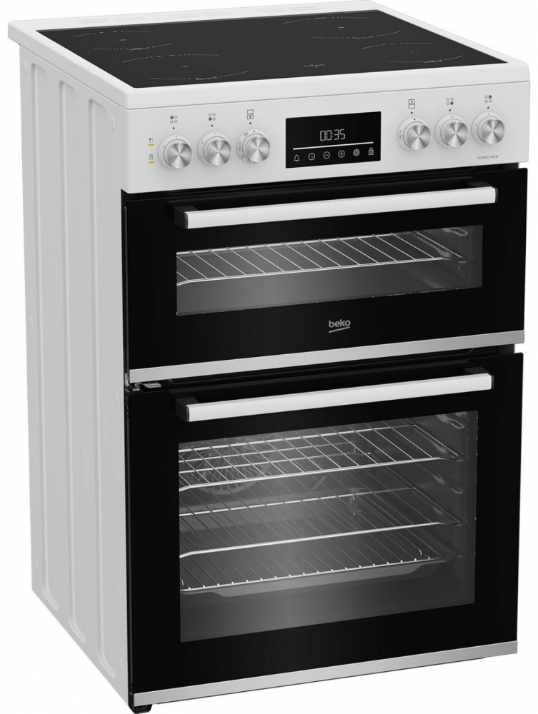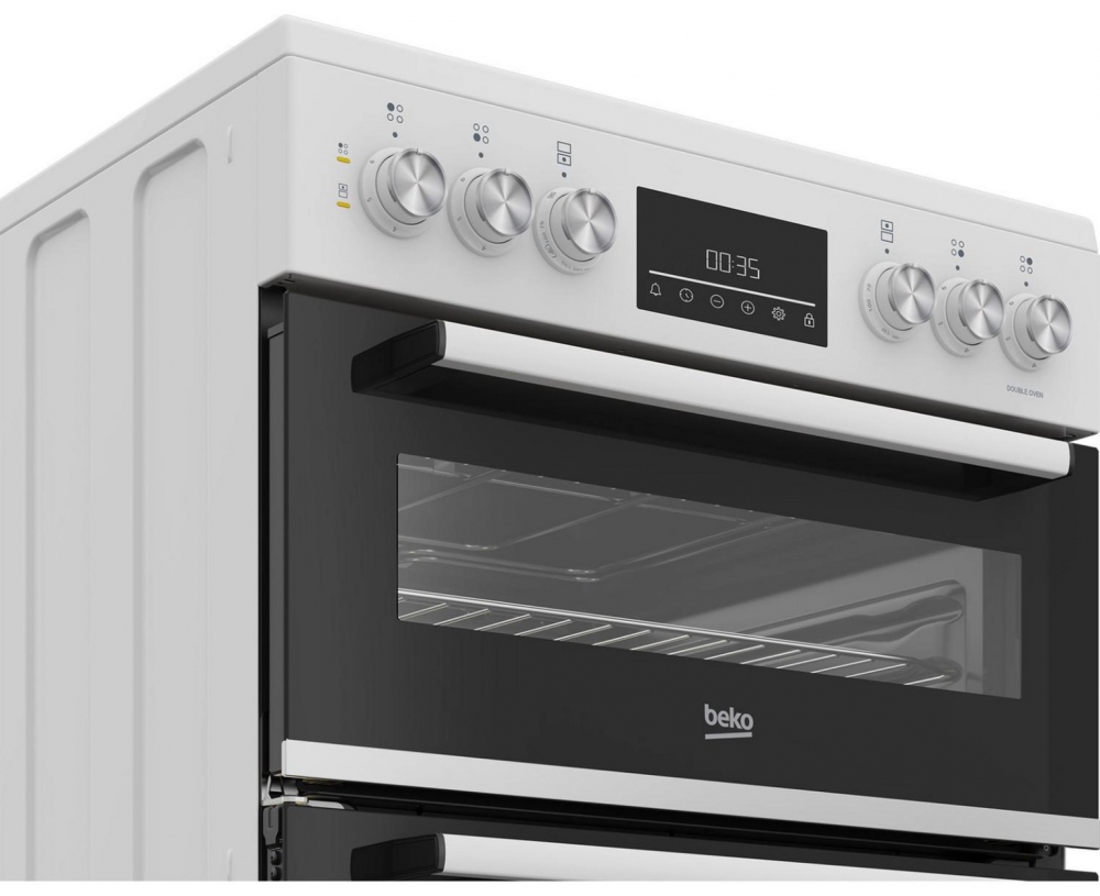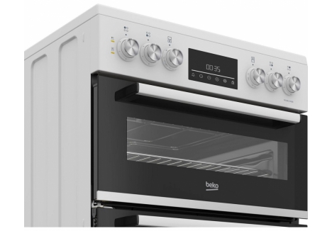 Beko EDC6731W is a versatile 60cm double oven electric cooker designed for busy households and home chefs. Finished in classic white, this appliance combines modern technology with practical features, including a vitroceramic Rapidlite hob, AeroPerfect fan oven, and a touch control LED display. Whether you're preparing a quick dinner or hosting a weekend feast, this cooker delivers consistent results with style.
