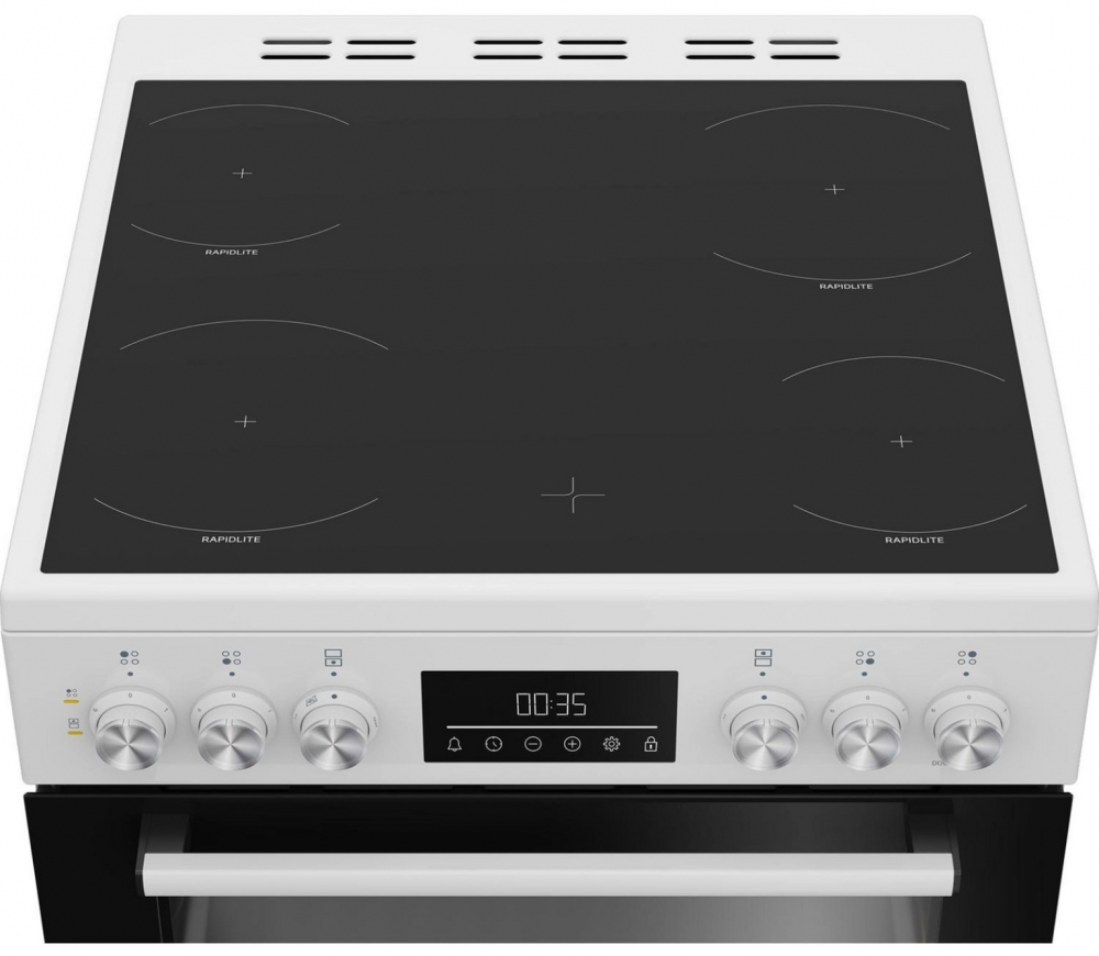 - Rapidlite ceramic hob – 4-zone surface heats quickly and cleans easily
