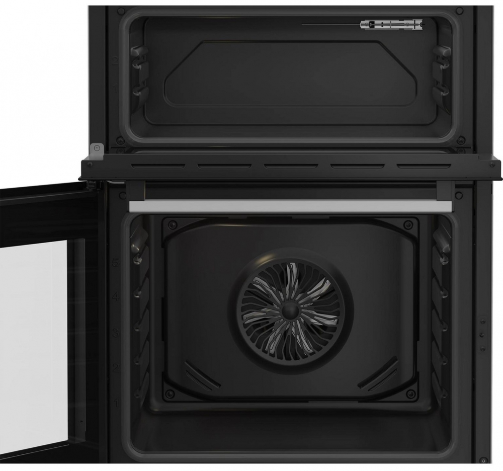 - Double oven – 69L fan oven and 36L conventional oven with integrated grill