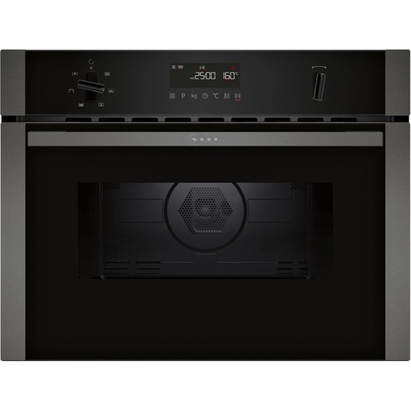 Neff C1AMG84G1B builtin microwave oven brings powerful cooking performance, Hotair baking and convenient automatic programmes together in a stylish graphitegrey appliance designed to integrate seamlessly into a modern kitchen. Neff C1AMG84G1B builtin microwave oven combines a generous 44 litre capacity with compact 60 x 45 cm builtin dimensions, making Neff C1AMG84G1B builtin microwave oven a practical choice for households that want flexible cooking options without sacrificing cabinet space. Neff C1AMG84G1B builtin microwave oven offers up to 900 watts of microwave power across five selectable power levels, so everyday meals, snacks and reheats are handled quickly and precisely. Finished in contemporary graphitegrey with a clear white LCD display and intuitive knob control, Neff C1AMG84G1B builtin microwave oven is designed to look good, be easy to use and deliver consistently reliable results.