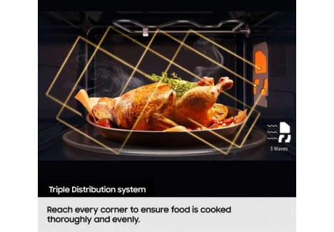 - Heating System: samsung 23l solo microwave with triple distribution system — ensures even heat