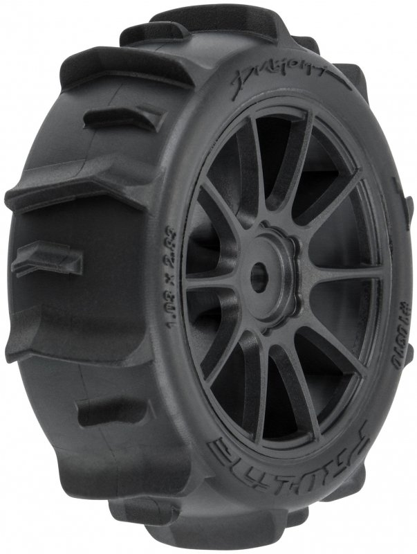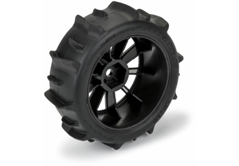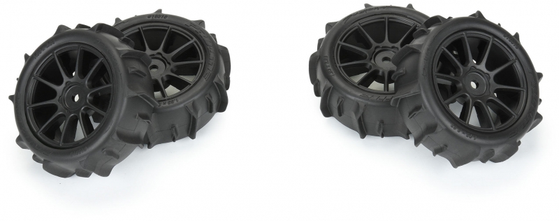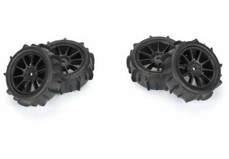 PRO1031010 | Dumont 1.9" Paddle Sand Tires Mounted on Mach-10 Black 12mm Hex Wheels (4) for ARRMA® Typhon™ GROM Front and Rear