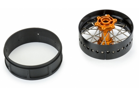 Just like full-size bikes, these wheels feature an anodized 6061 billet aluminum hub and rim with zinc-plated steel spokes that are factory-laced and precisely trued. Using the V2 Bead tire mounting sleeve, these wheels are easily mounted to your Pro-Line V2 Bead MX tires. The mounting sleeve provides a reliable glue bond to pre-mount tires and swap onto the Pro-Spec Aluminum Wheel.
