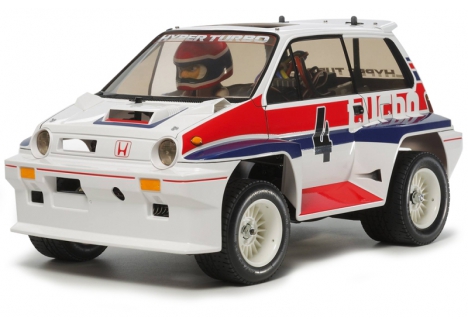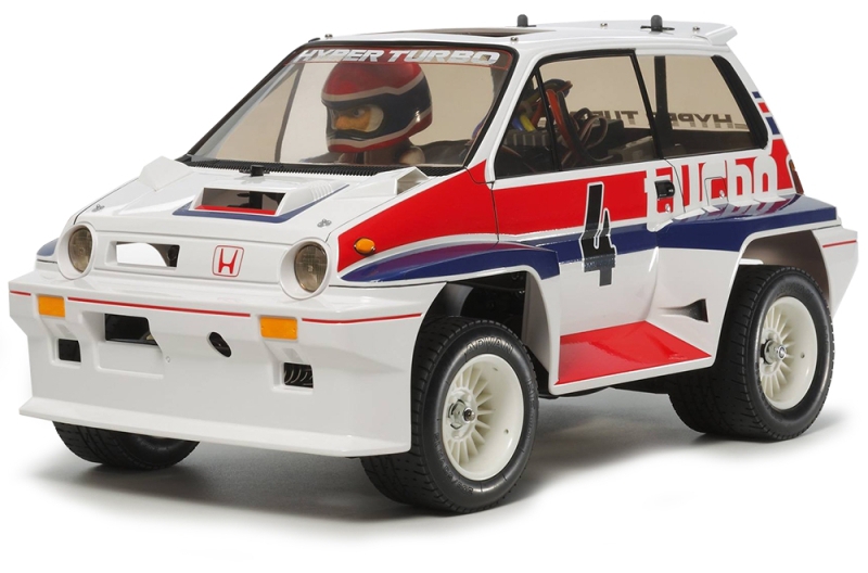 Bring back the charm of classic RC with the Tamiya Honda City Turbo WR-02C. This 1/10 scale electric RC model is a modern reimagining of the 1980s “Willy’s Wheeler”, offering a unique blend of vintage style and comical performance. Built on the highly capable WR-02C chassis, it delivers a wheelie-ready driving experience packed with personality.