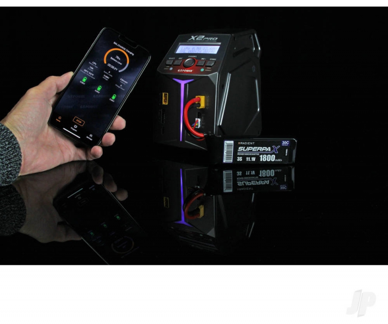 Charger manufacturers come and charger manufacturers go, however G.T. Power, it seems, is here to stay. Widely regarded as providing the best quality battery charging and care devices available in the R/C world, its products have made many friends over the years and, indeed, the X2 Pro is set only to increase the following. Offering an impressive 400W of DC charge power (200W AC) the X2 Pro is able to charge batteries with a much higher amperage in far less time. With a choice of mains or 11-26V DC input, it s ideal for use both at home and at the field, track or lake. Moreover the backlit LCD makes it simple to select the charge parameters while also monitoring a battery's status in any light. Compatible with the G.T. Power Bluetooth App that offers remote control of charging and improved access to cell data, the X2 Pro has some truly impressive additional functions, not least Smart QR Code scan and charge and a tyre warm and battery repair mode. All said and done, this intelligent unit is not only powerful and compact but convenient and massively versatile, too.
