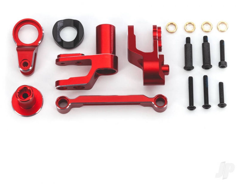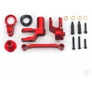 Traxxas Steering bellcranks, drag link (Red-anodised 6061-T6 aluminium) / bellcrank bushing (1) / 3x20mm BCS (with threadlock) (2) / 3x20mm BCS (with threadlock) (2) / 3x20mm shoulder screws (with threadlock) (2) / 3x15mm BCS (with threadloc TRX10246-RED