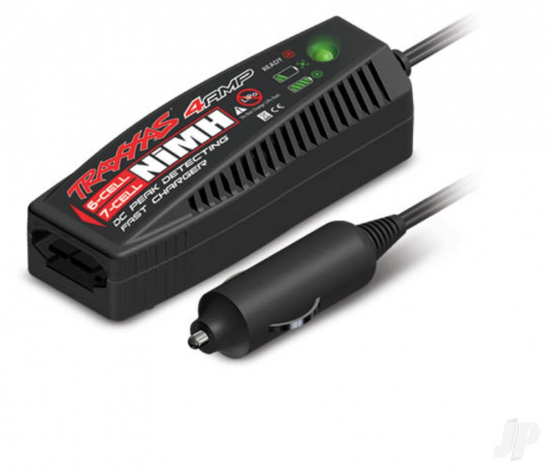 The 4-amp NiMH fast charger uses a 12-volt DC power outlet for universal high-output charging. The charger is optimised for charging 6- or 7-cell (7.2 volt - 8.4 volt) Traxxas iD Power Cell NiMH batteries. Peak-detection circuitry makes sure the battery receives a full charge every time. The status LED flashes green to indicate when charging is in progress, then turns solid green when charging is complete for foolproof charging, peak performance, and maximum runtime. For NiMH batteries only.